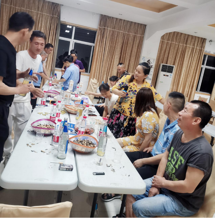 “呵呵呵”!听,那群人们在欢笑,不用猜,那肯定也是我们杰欣分公司奋斗一线的同志们在欢快喝酒和纵情歌唱。